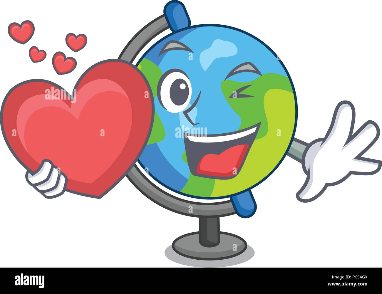Con el corazón mundo mascota estilo de dibujos animados Imagen Vector de stock - Alamy