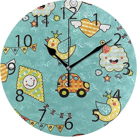 XiangHeFu Reloj de Pared, Redondo Diámetro de 10 Pulgadas Mundo silencioso de Dibujos Animados Feliz Decorativo para la Escuela de Oficina en casa: Amazon.es: Hogar